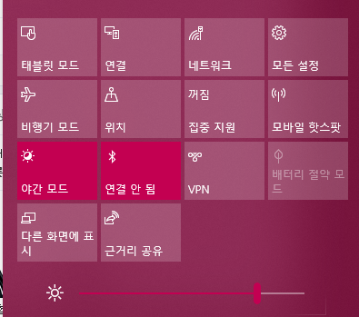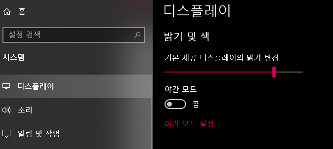 디스플레이 항목에서 야간모드 클릭 해보셈