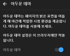 로그인한사람은 일케뜨는데 중간에 보면 어두운테마 보인다 저거 클릭하셈