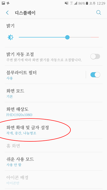 화면 확대 및 글자 설정 들어가 주자