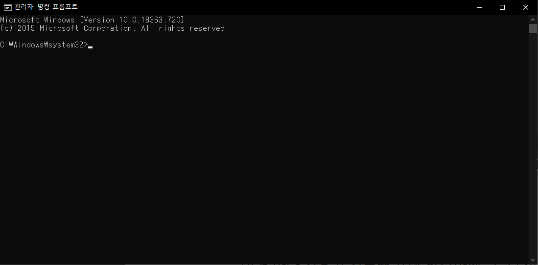 이상한 검은 화면이 떴다 이제 아래 글자만 복사해서 붙여넣어주고, 엔터 하면 끝임