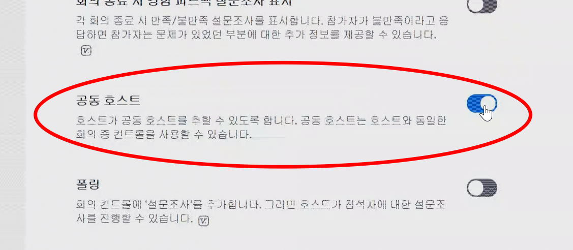 쭉쭉 내리다보면 "공동 호스트" 스위치가 보인다.