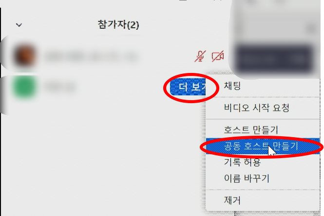 공동호스트는 호스트처럼 " 손 내리기", 모두 음소거, 비디오 시작 요청, 음소거 해제 요청 등등 역할을 수행할 수 있다.